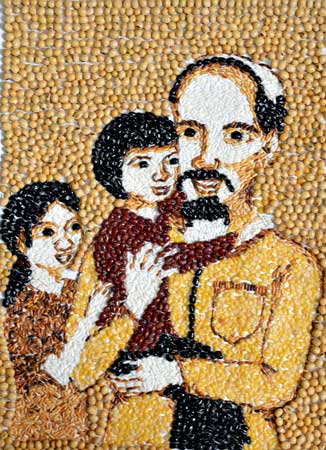 Chất liệu các em sử dụng chủ yếu là sáp mầu, bột mầu... đặc biệt có những tác phẩm dùng chất liệu là ngũ cốc (đậu đỏ, đậu đen, đậu xanh, gạo...).
