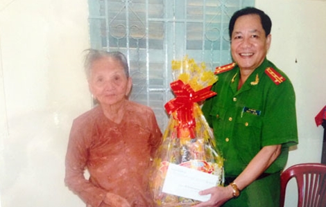 | Đại tá Lê Văn Vân - Trưởng Phòng PC45 Công an tỉnh Bến Tre trao quà Tết cho thân nhân gia đình liệt sỹ. |