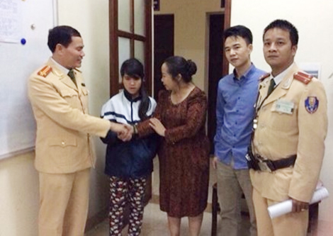 Chiều 5/3, Đội Cảnh sát giao thông (CSGT) số 4, Phòng CSGT đường bộ - đường sắt, Công an TP Hà Nội cho biết, chiều 3/3, Trung tá Nguyễn Văn Thu chỉ huy tổ công tác gồm Trung úy Nguyễn Quang Huy và Trung tá Phạm Văn Hồng, Đội CSGT số 14 trong quá trình làm nhiệm vụ tuần tra đảm bảo ATGT trên tuyến đường Giải Phóng, gần khu vực bến xe phía Nam phát hiện một cháu gái đang đứng khóc ở hè đường. Đáng chú ý, một số thanh niên lạ mặt đứng cạnh đó lôi kéo trong sự sợ hãi của cô bé.