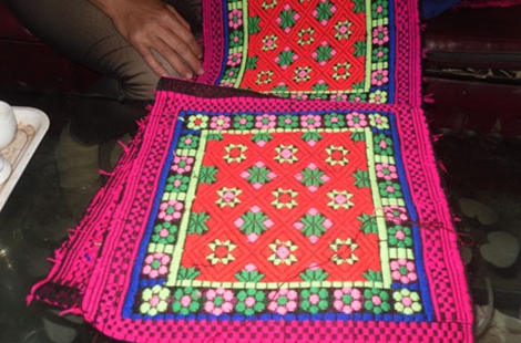 Nói xong, chị lấy từ trong tủ ra một vài tấm mặt địu, khăn trải ghế, bàn vừa hoàn thiện cách ít hôm để cho chúng tôi chiêm ngưỡng, giải thích các ý nghĩa hoa văn, màu sắc trên tấm thổ cẩm một cách say sưa, chẳng chút giấu giếm.