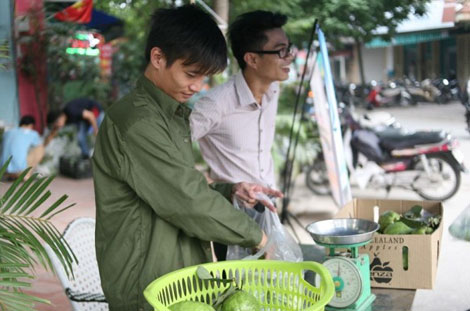 | Từ giã showbiz, Lệ Rơi (bên trái) về bán ổi. |