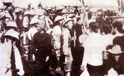 | Bến Sông Đốc, nhân dân miền Nam tiễn người thân tập kết năm 1954. |