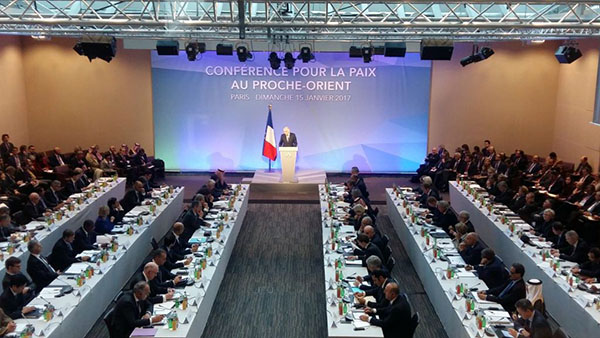 Ngược lại, Palestine hoan nghênh hội nghị này, trong đó nhằm tái khẳng định sự ủng hộ của thế giới cho một giải pháp hai nhà nước cho cuộc xung đột kéo dài nhiều thập kỷ qua. Ramallah đồng thời bày tỏ sự giận giữ trước việc Tel Aviv liên tiếp coi thường những nghĩa vụ về hòa bình và những hoạt động vi phạm của Israel, chủ yếu là hoạt động xây nhà định cư, vốn hủy hoại giải pháp 2 nhà nước.