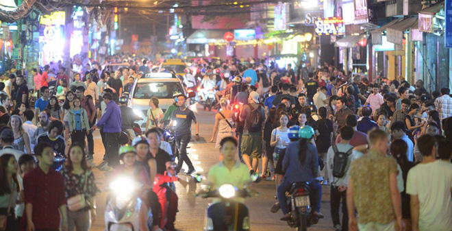 Phố Tây đông nghẹt người đi bộ trong một dịp lễ.