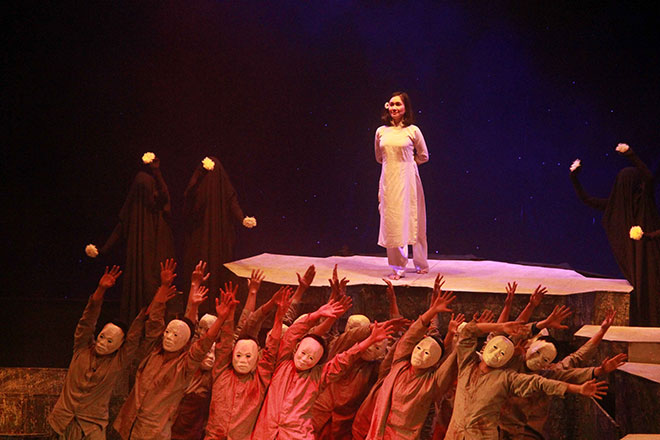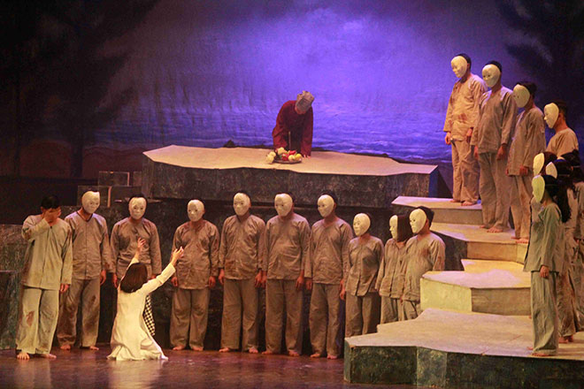 Cảnh trong vở “Người tù trao áo” tối ngày 17-1 tại Nhà hát Âu Cơ, Hà Nội