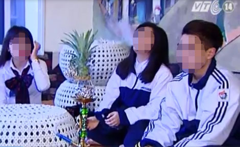 | Cảnh học sinh hút shisha trong phóng sự đã được phát sóng trên kênh VTC14 . |